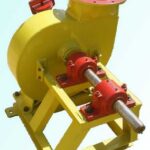 Diámetro de turbina 395 mm, de 10 paletas de 1/4” de espesor en forma helicoidal recta, fondo de turbina en chapa de 3/8” con una masa central cónica con chavetero de 1/4” totalmente balanceado y centrado. Con soldadura especial. Revestimiento en corte Alavés soldado con electrodos especiales Anti Desgaste (Electrodo Especial 600 S alto impacto)