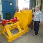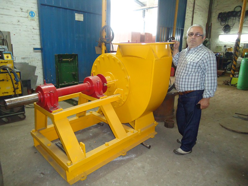 Diámetro de turbina 800 mm, de 10 paletas de 3/8” de espesor en forma helicoidal recta, fondo de turbina en chapa de 5/8” con una masa central cónica con chavetero de 5/8” totalmente balanceado y centrado.