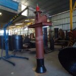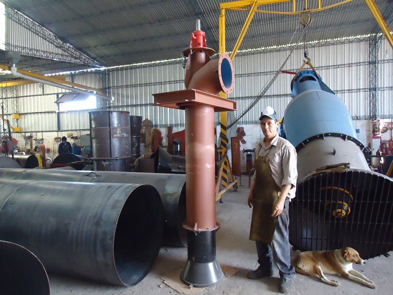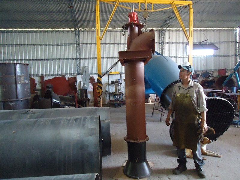 Integrada por un cuerpo central fabricada en caño de acero Ø nominal 2″, con tres álabes helicoidales, en chapa de acero de 3/16″ soldados con electrodos especiales para este tipo de material, balanceado dinámicamente para soportar 1450 RPM.
