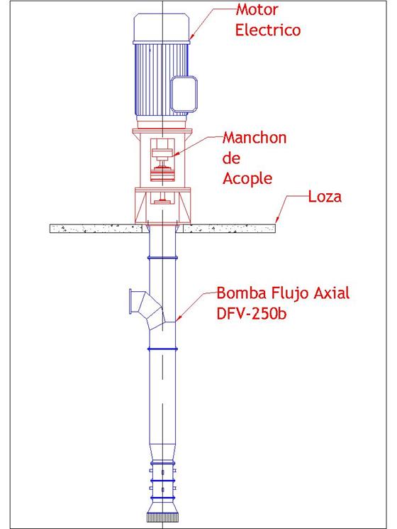 La transmisión de potencia se realiza a través de un manchón de acople directamente a un motor eléctrico vertical descendente. La parte superior de la bomba lleva una brida normalizada según el motor a colocar.